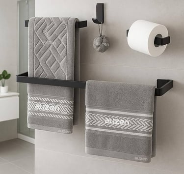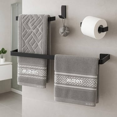 Kit de Acessórios para Banheiro Quadrado Preto Fosco Luxo - 4 Peças Itens inclusos Kit de Acessórios para Banheiro preto: 1 UN - Porta toalha de banho com 50 cm Comprimento 1 UN - Porta toalha de rosto 1 UN - Gancho cabide para banheiro 1 UN - Papeleira suporte papel higiênico Material Alumínio elevada durabilidade (Cuidado outros vendedores vendem ferro vergalhão que oxida e enferruja semelhante ao portão).