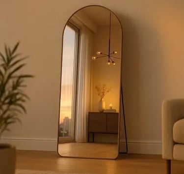 Transforme seu espaço com o Espelho Corpo Inteiro de 170cm, uma peça única que combina design contemporâneo e funcionalidade. Seu formato exclusivo, com topo arqueado e base reta com cantos arredondados, cria um visual elegante e arquitetônico ideal para banheiros, salas, quartos, closets e ambientes comerciais.